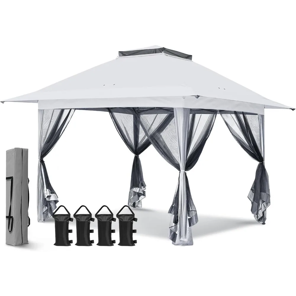 - EXTENDED EAVES: The gazebo’s extended eaves are attached to the frame and open automatically when the patio gazebo is opened. The oversize 13x13ft canopy top provides maximum coverage so up to 12 people can enjoy the spacious 169 square feet of shade.