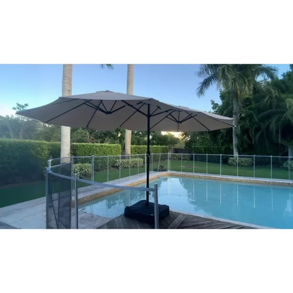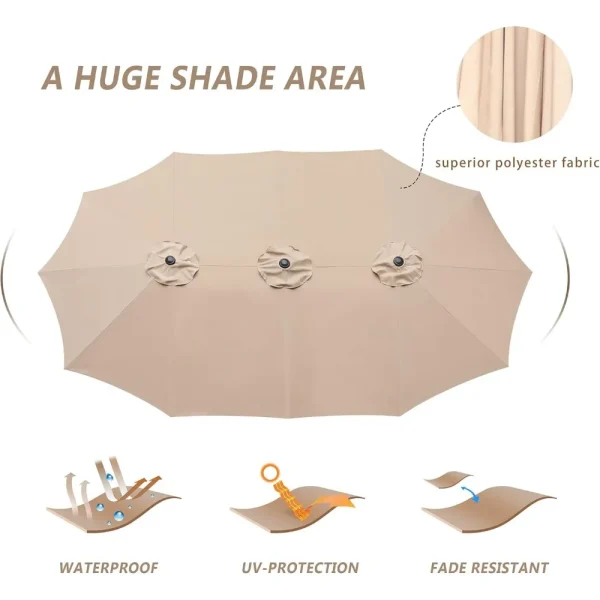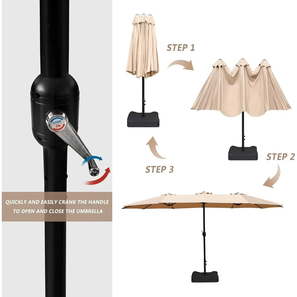 - 【Great Coverage】Patio umbrella size: 15(L) x 9(W) x 7.8(H) FT. Designed with double sided sun canopy to create a great shaded area. Provide you with plenty of coverage!