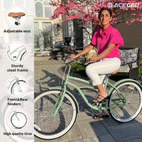 - Comfortable Design:Feel the gentle sea breeze on your face as you glide along the sandy shores or explore your favorite neighborhood routes. The ACEGER Beach Cruiser Bike offers an ergonomic and relaxed riding position, ensuring ultimate comfort during your leisurely rides.