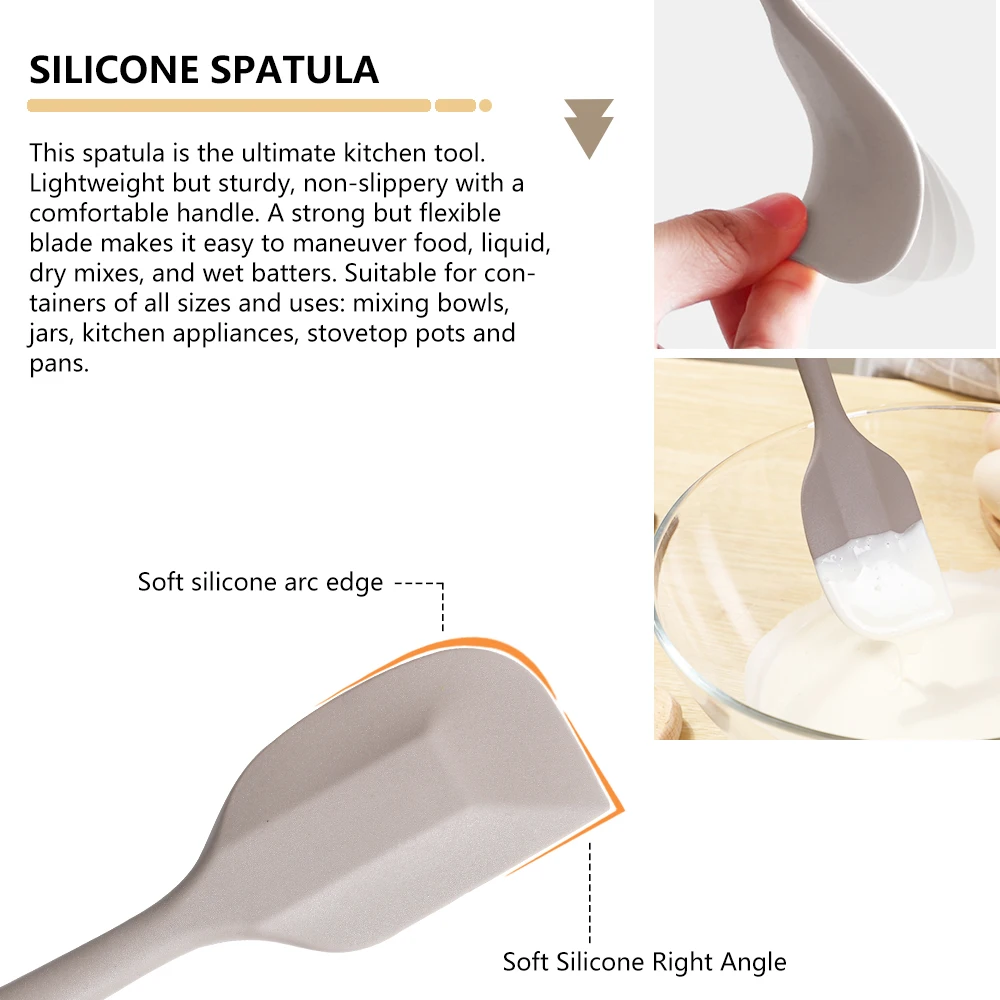 1. Upgrade your baking skills with this non-stick heat-resistant silicone baking tool set. This 6-piece set adds elegance and style to your kitchen. The set includes Spoonula & Mini Spoonula, Spatula & Mini Spatula, Spreader, Basting Brush – all with ergonomic grip design to ensure comfortable and safe baking and cooking.