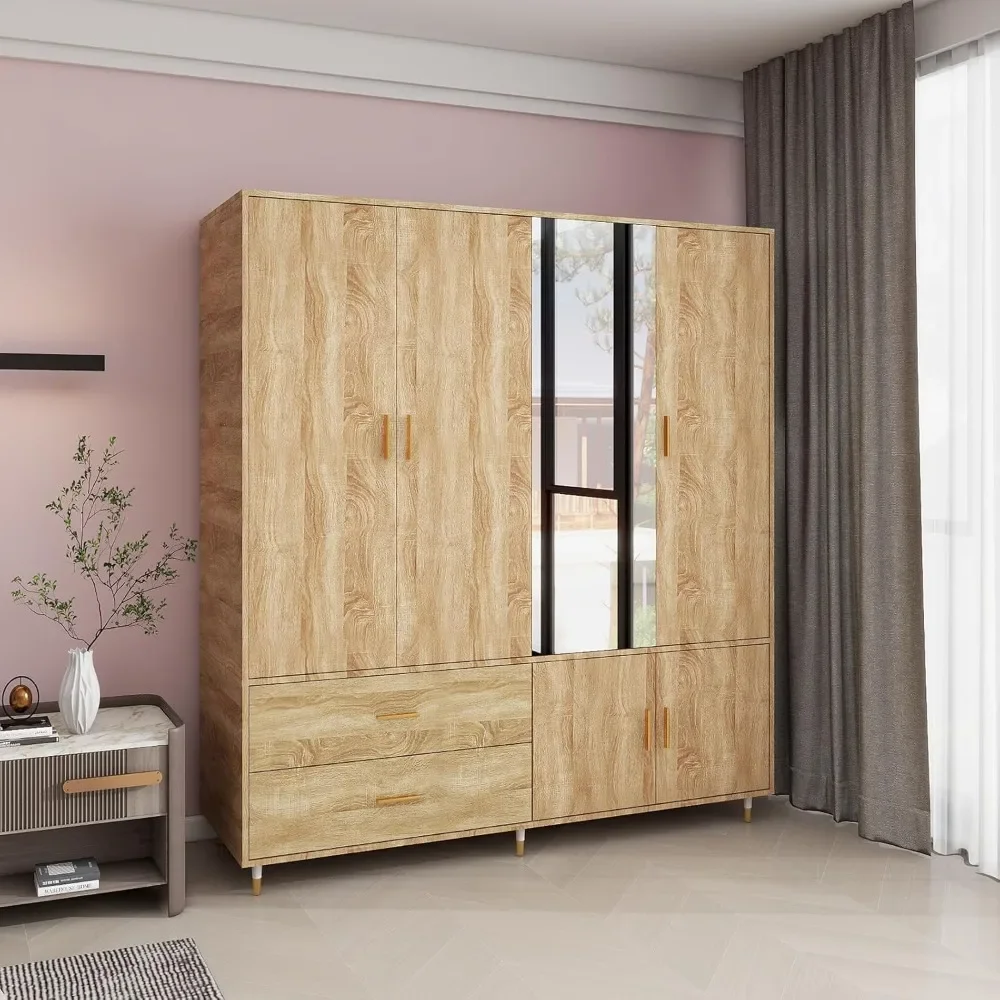 Spacious Design: This armoire wardrobe closet with 4 doors, 2 drawers, 2 hanging rods, a large mirror, and a spacious bottom cabinet provides ample storage space for your clothes, shoes, and accessories. Its square design and clean lines make it a stylish addition to any bedroom.