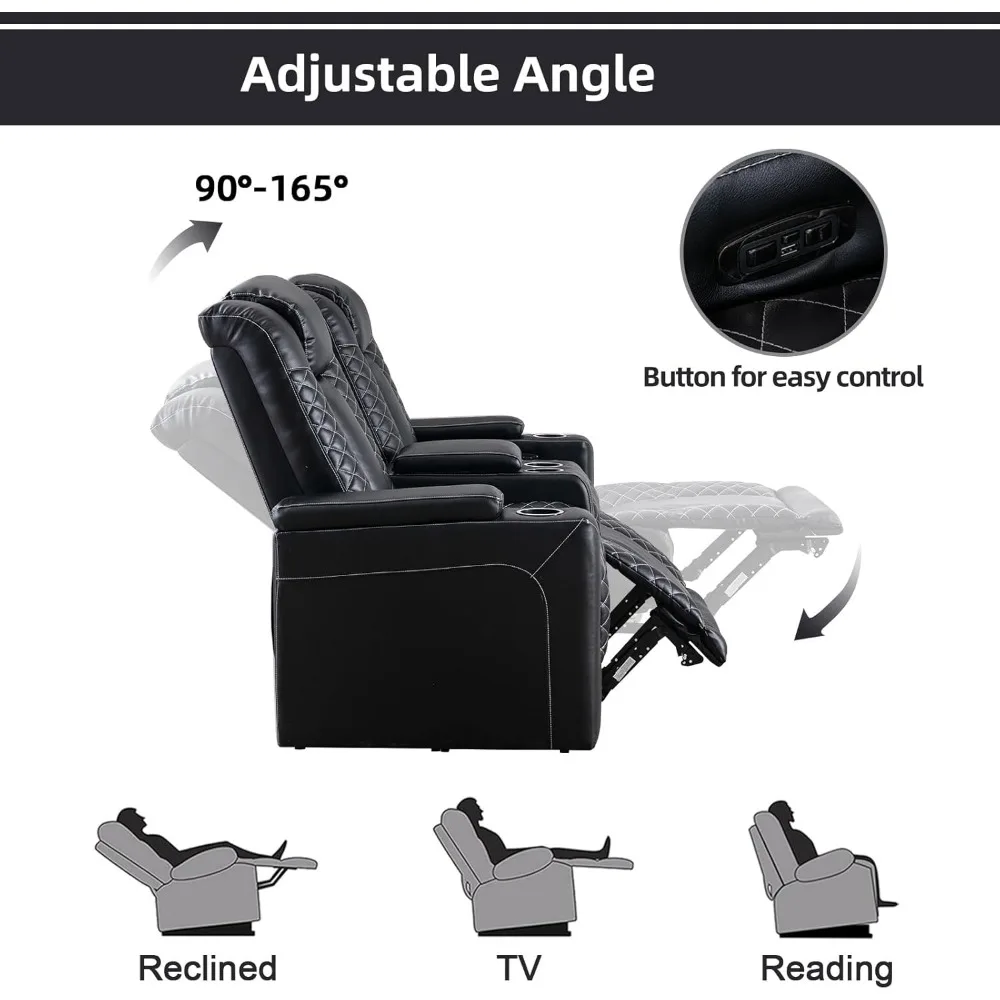 Home Theater Seating, Electric Power Loveseat Recliner with USB Ports and Cup Holders, Dual Recliner with Hidden Arm Storage
