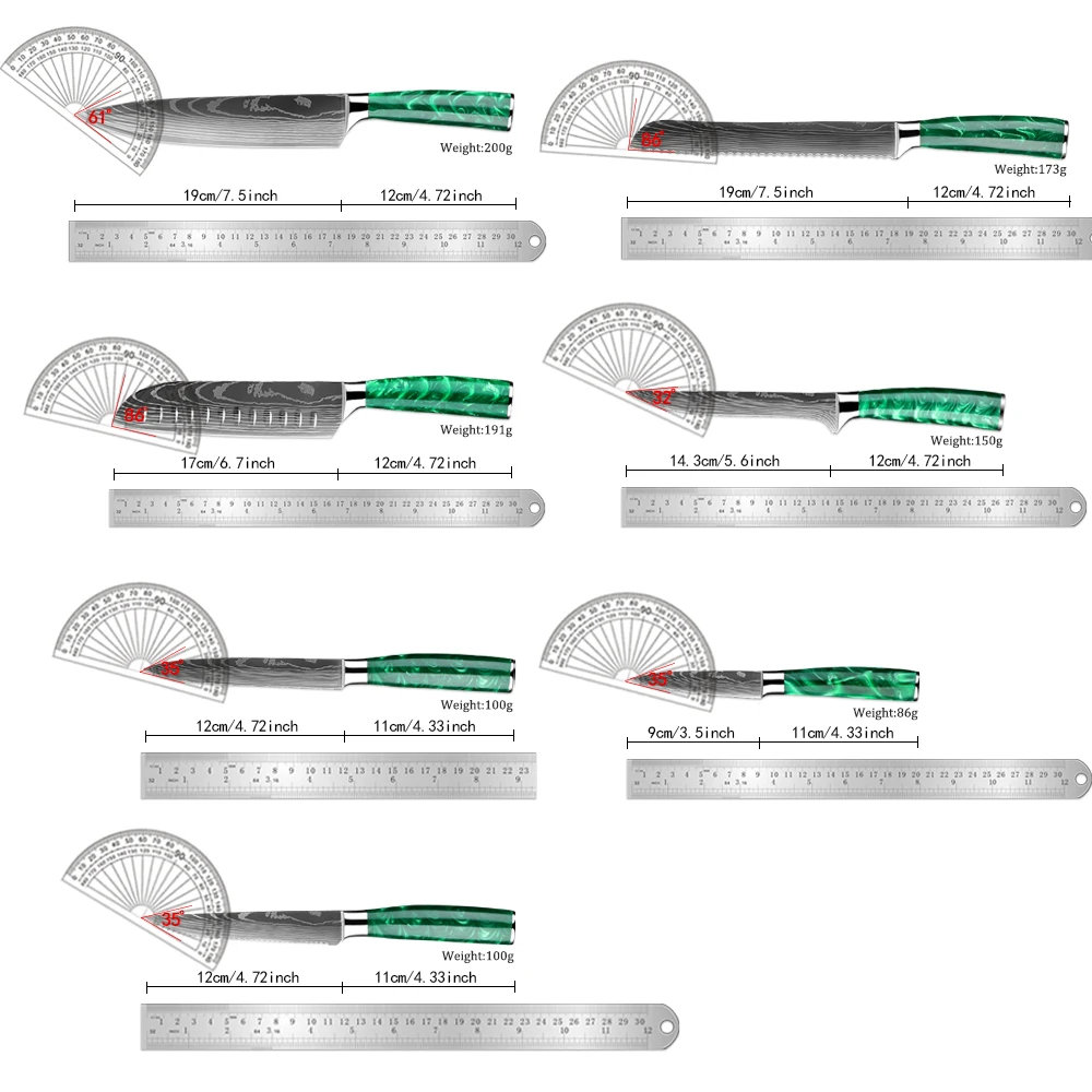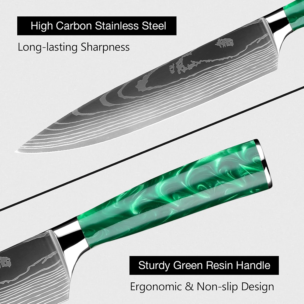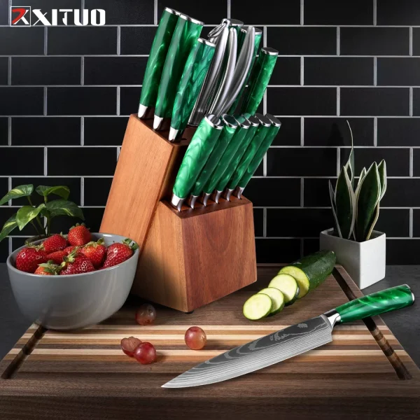 Kitchen Knife Set,15-Piece Knife Set With Block Wooden,High Carbon Japan Steel Laser Damascus Pattern Knife with Steak Knives