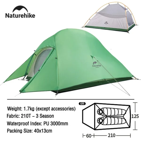 1. Very light hiking tent, only 1.7Kg (not including accessories)